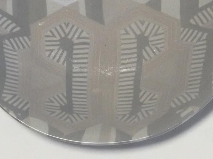 一見、無地に見える灰茶色の素地にも細い白線が入っています。ワラビとゼンマイの模様はアフリカの泥染めのようで、活き活きした生命感があります。